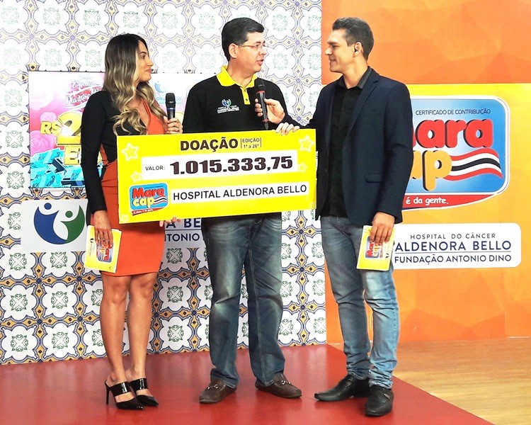 Mães, pais e filhos atendidos no Hospital do Câncer Aldenora Bello (HCAB), em São Luís/MA, começaram a semana com uma boa notícia. No último domingo (13), o vice-presidente da Fundação Antonio Dino, Antonio Dino Tavares, recebeu durante o programa especial do dia das mães, um cheque no valor de R$ 1.015.333,75, referente ao somatório dos repasses, feitos até esse final de semana, pelo Certificado de Contribuição Maracap.