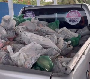 Nos vídeos, o prefeito de Santa Rita, Hilton Gonçalo, ainda afirma que a distribuição das toneladas de pescados foi feita “com recursos próprios”, sem explicar à justiça: recursos próprios dos cofres públicos ou dos bolsos de ambos que aparecem juntos? Se foram recursos da Prefeitura, por que a sobrinha aparece também na distribuição de peixes e com adesivos de propaganda eleitoral antecipada?