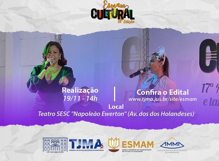 ESMAM Cultural promove 18ª Mostra de Arte e Cultura do Judiciário no dia 19 de novembro, em São Luí Geral ESMAM Cultural promove 18ª Mostra de Arte e Cultura do Judiciário no dia 19 de novembro, em São Luí BNC Notícias qui 13/11/2025 21:42 SÃO LUIS – A Escola Superior da Magistratura do Maranhão (ESMAM) realiza, no dia 19 de novembro,...Ler Matéria Completa